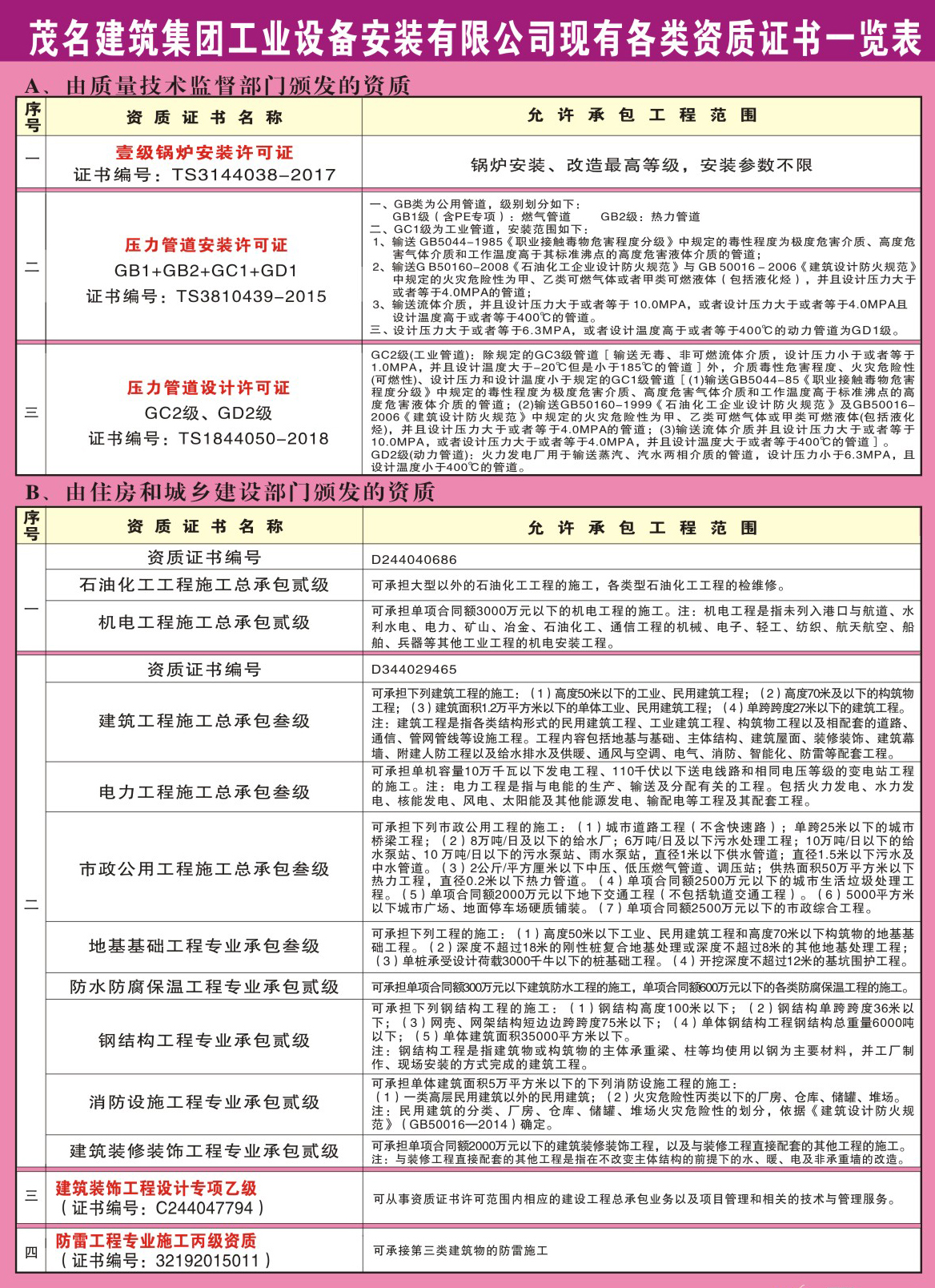 當前位置:網(wǎng)站首頁 >> 企業(yè)資質(zhì) >> 安裝資質(zhì)證書